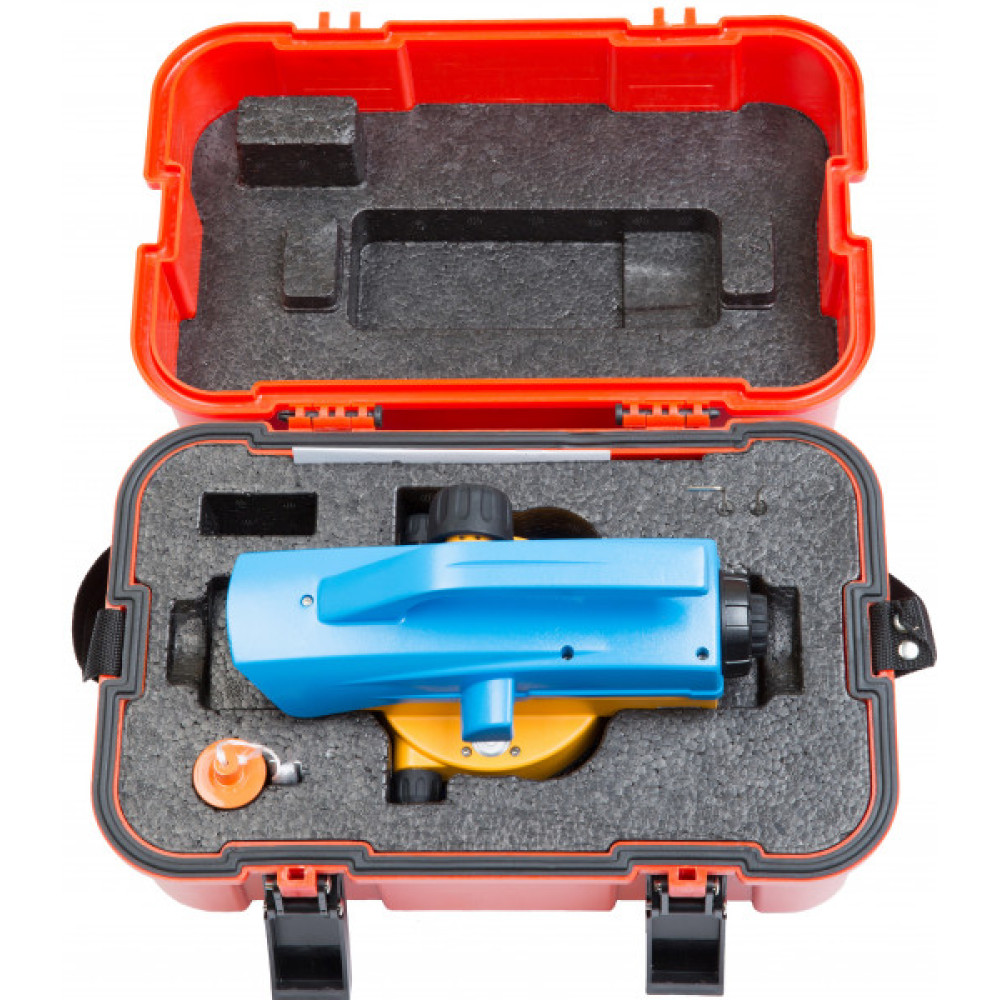 Прибор поставляется в прочном пластиковом кейсе в комплекте с нитяным отвесом и юстировочными инструментами.
